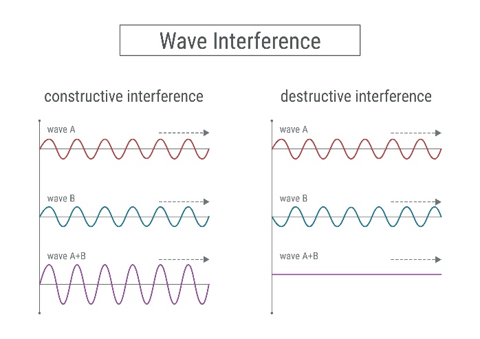 When two waves meet out of sync, they cancel (silence).